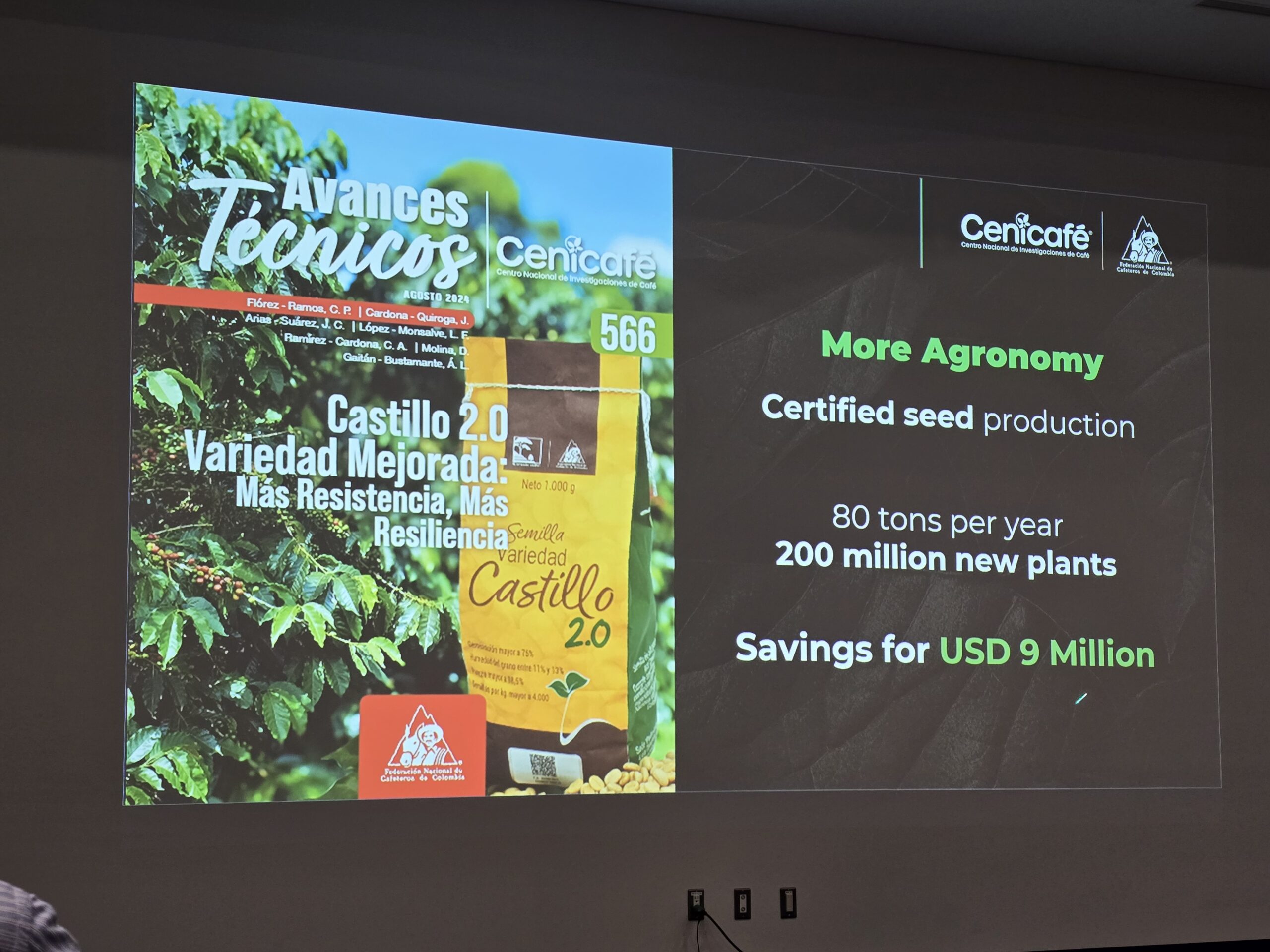 認証苗(Castillo 2.0)を使用した農地では効果がでてきていて、200百万の新木を植え、80トンの収穫があり、結果として9百万米ドルの費用削減へつながっています。
